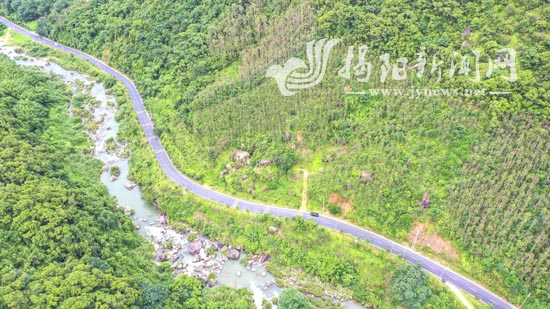 揭西县坪红公路穿梭于青山绿水之间,绘就“车在绿中行、人在画中游”绿美画卷。
