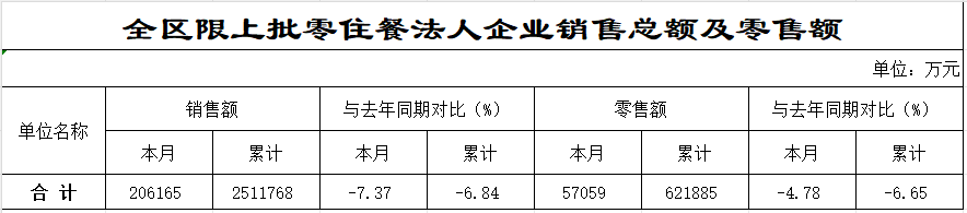 榕城区2025年1-11月全区限上批零住餐法人企业销售总额及零售额