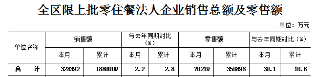榕城区2022年1-6月全区限上批零住餐法人企业销售总额及零售额
