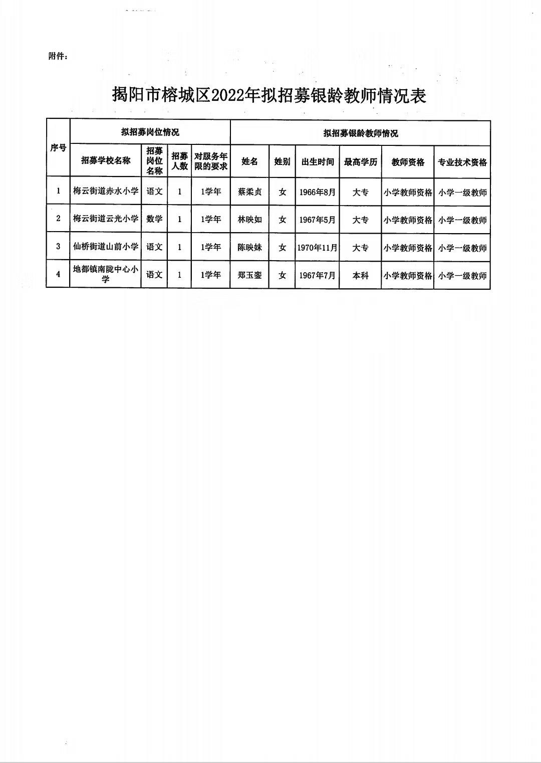 揭阳市榕城区2022年公开招募银龄教师拟招募人员名单公示