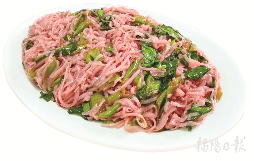 粿条历史悠久,早在明代的民谣《秋八月观神之八》中就有记载:“箸头尖,箸尾摇,箸头尖尖挟针菜,箸尾摇摇挟粿条。”清代后,随着潮人移民海外,它在东南亚也广受欢迎。在揭阳,粿条既是日常美食、礼品,也是祭祀供品,从街边小吃摊到高档餐厅,都能看到它的身影。