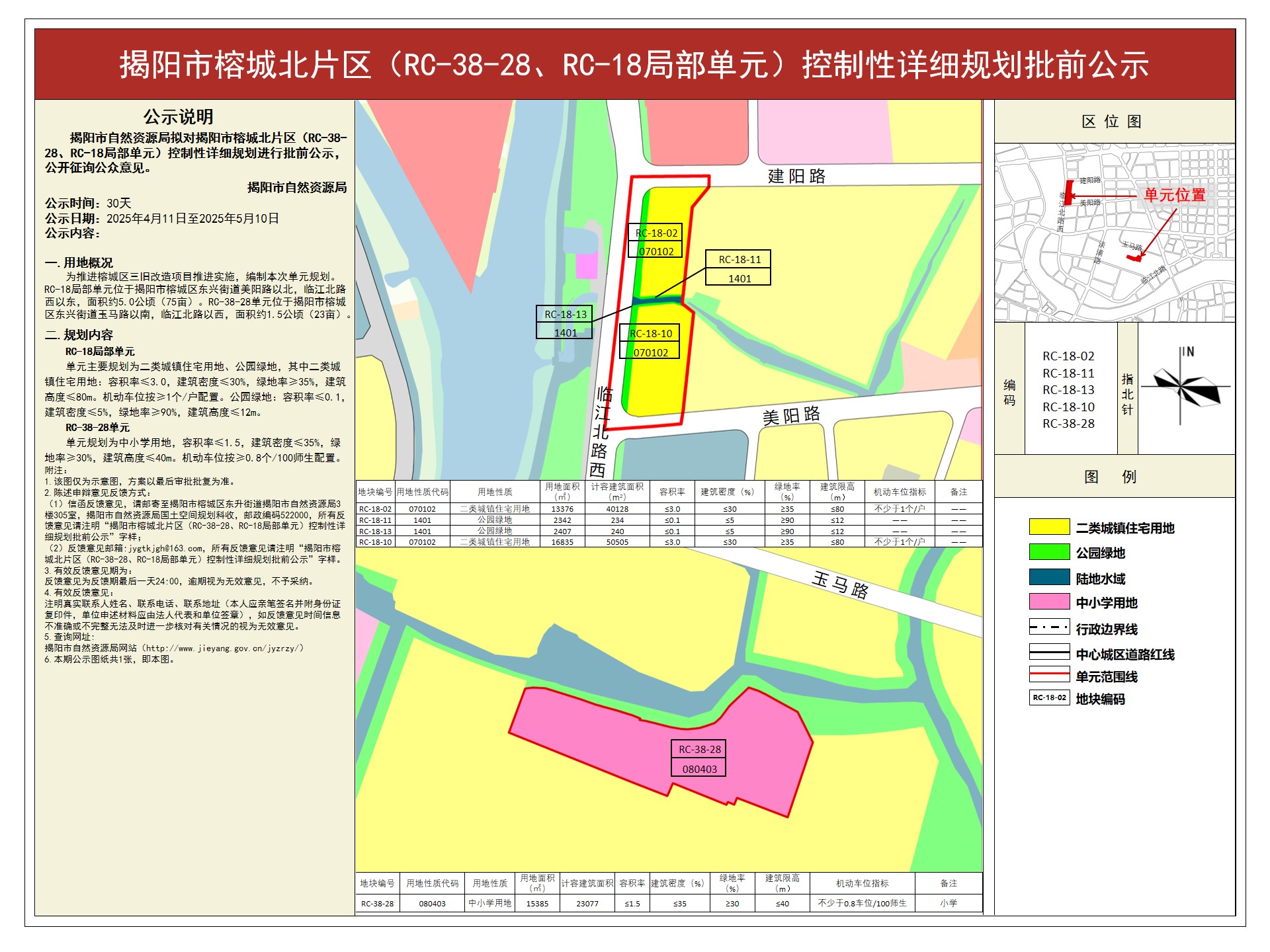 揭阳市榕城北片区(RC-38-28、RC-18局部单元)控制性详细规划批前公示