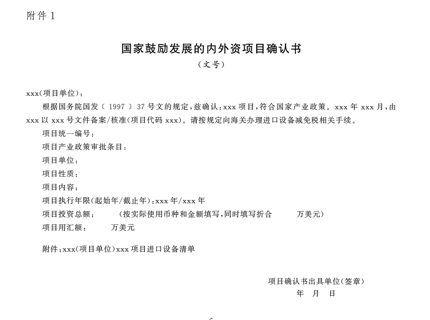 国家鼓励发展的内外资项目确认书(格式)是怎样的?