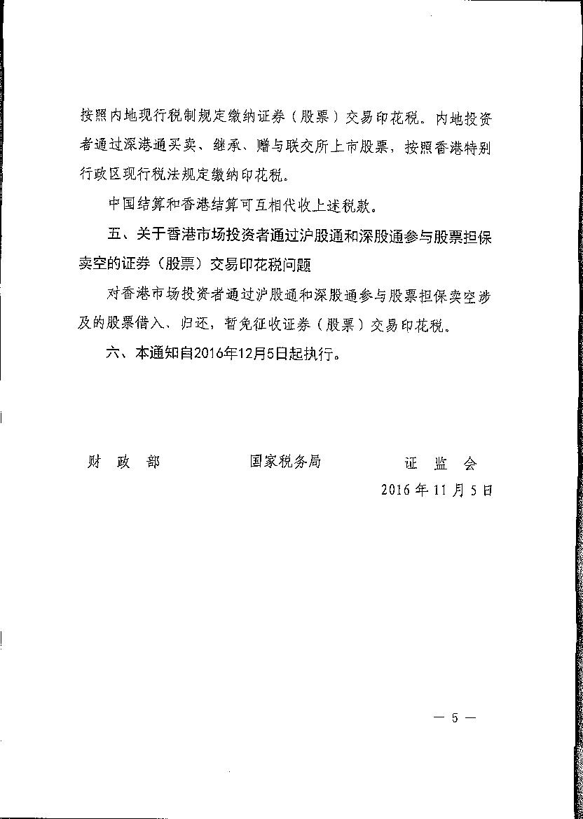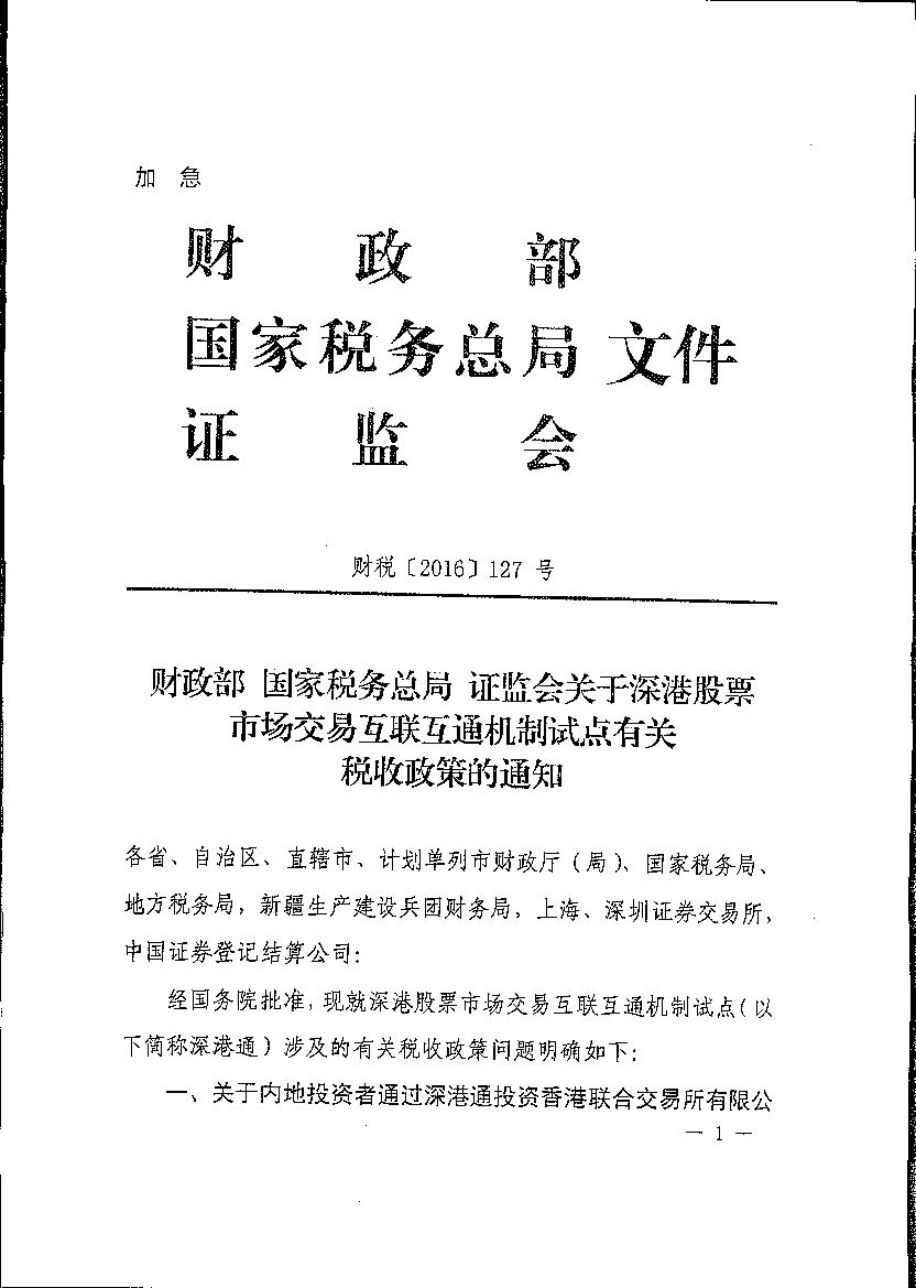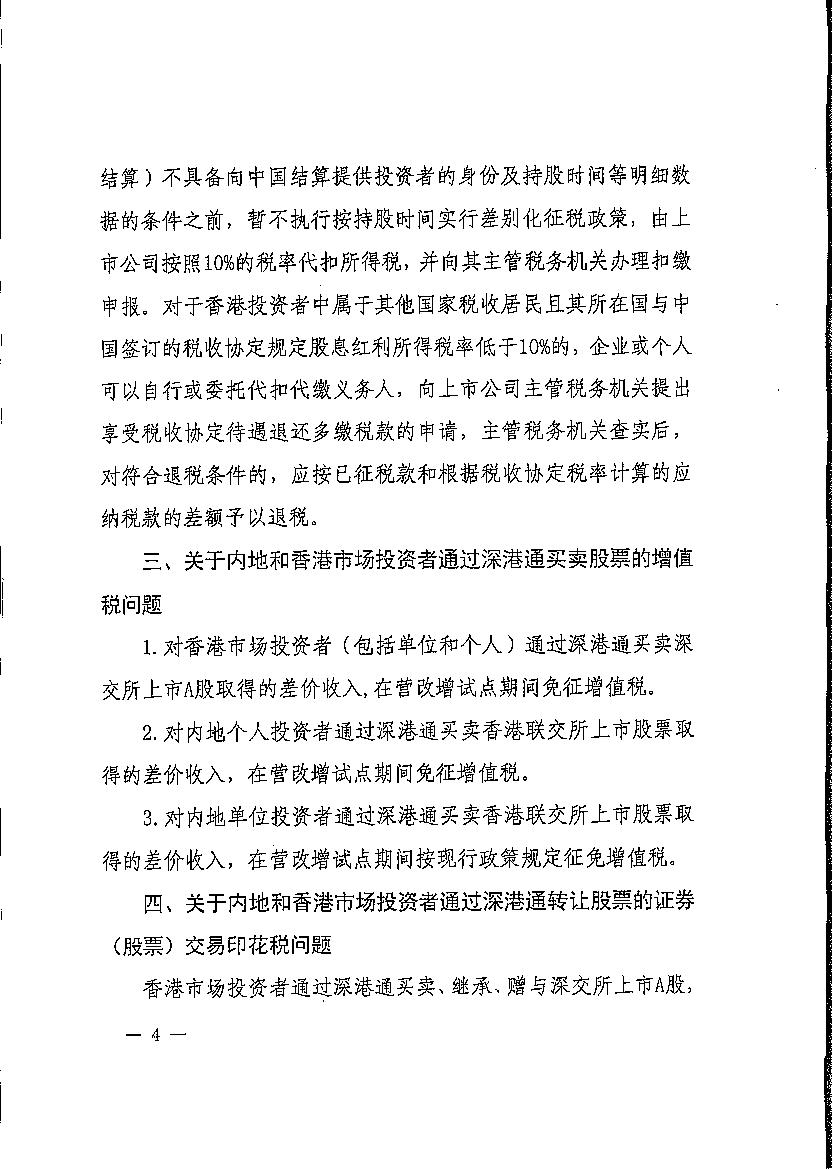 财政部国家税务总局证监会关于深港通股票市场交易互联互通试点有关税收优惠政策的通知
